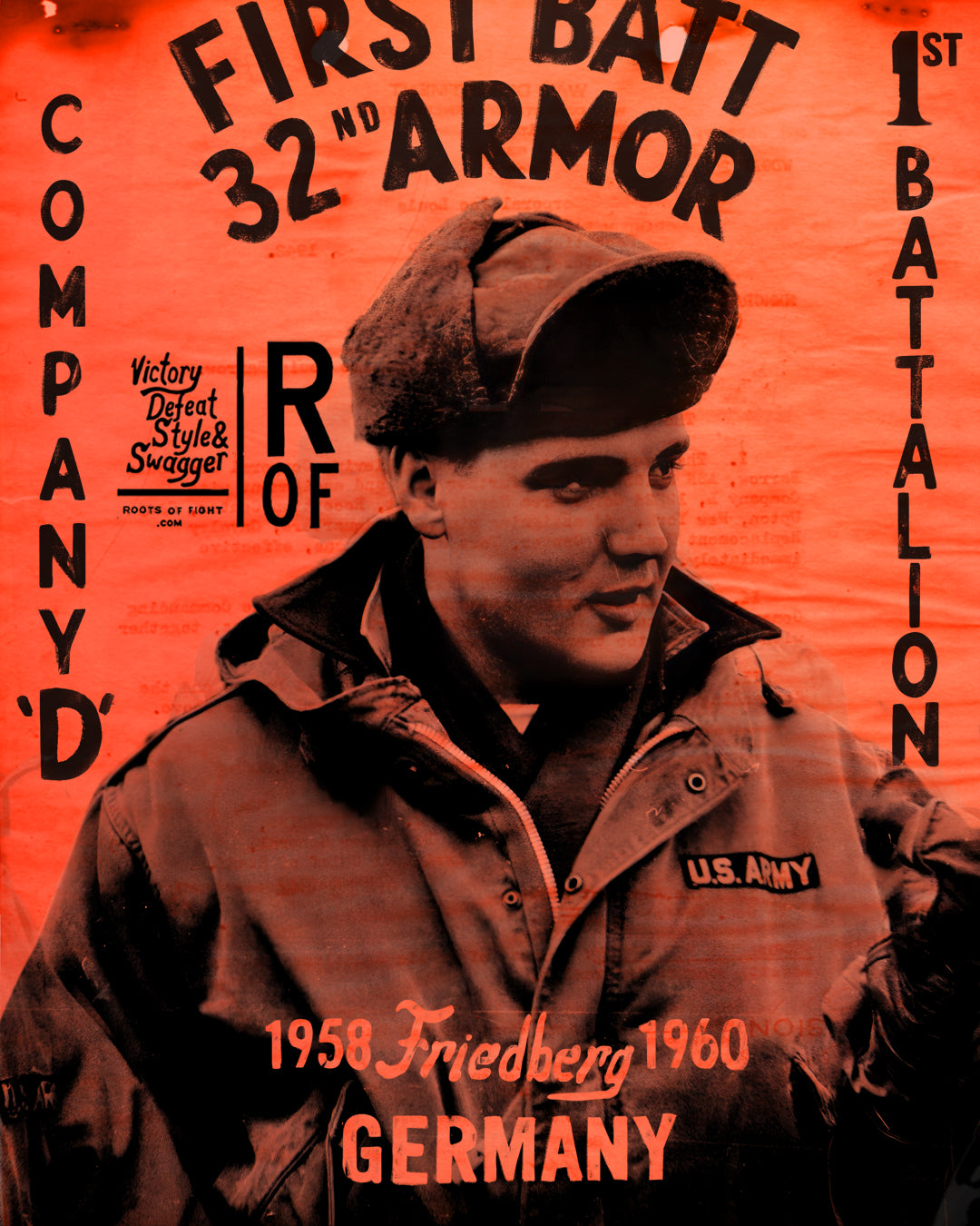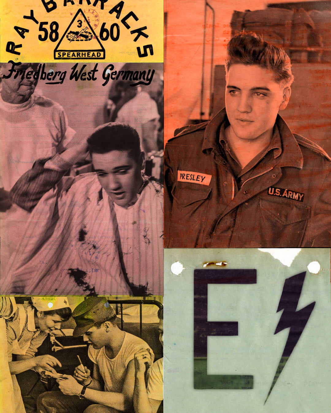 Imagine the sensation of the day. A few years after his smash hit single “Heartbreak Hotel,” Elvis went into the Army. From 1958-1960 he served as a member of two separate armed battalions, first at Fort Hood, and immediately after in Germany, with the 1st Medium Tank Battalion, 32nd Armor. With his global fame, people wondered if the King of Rock & Roll would receive special handling in the military. Elvis wouldn’t have that.