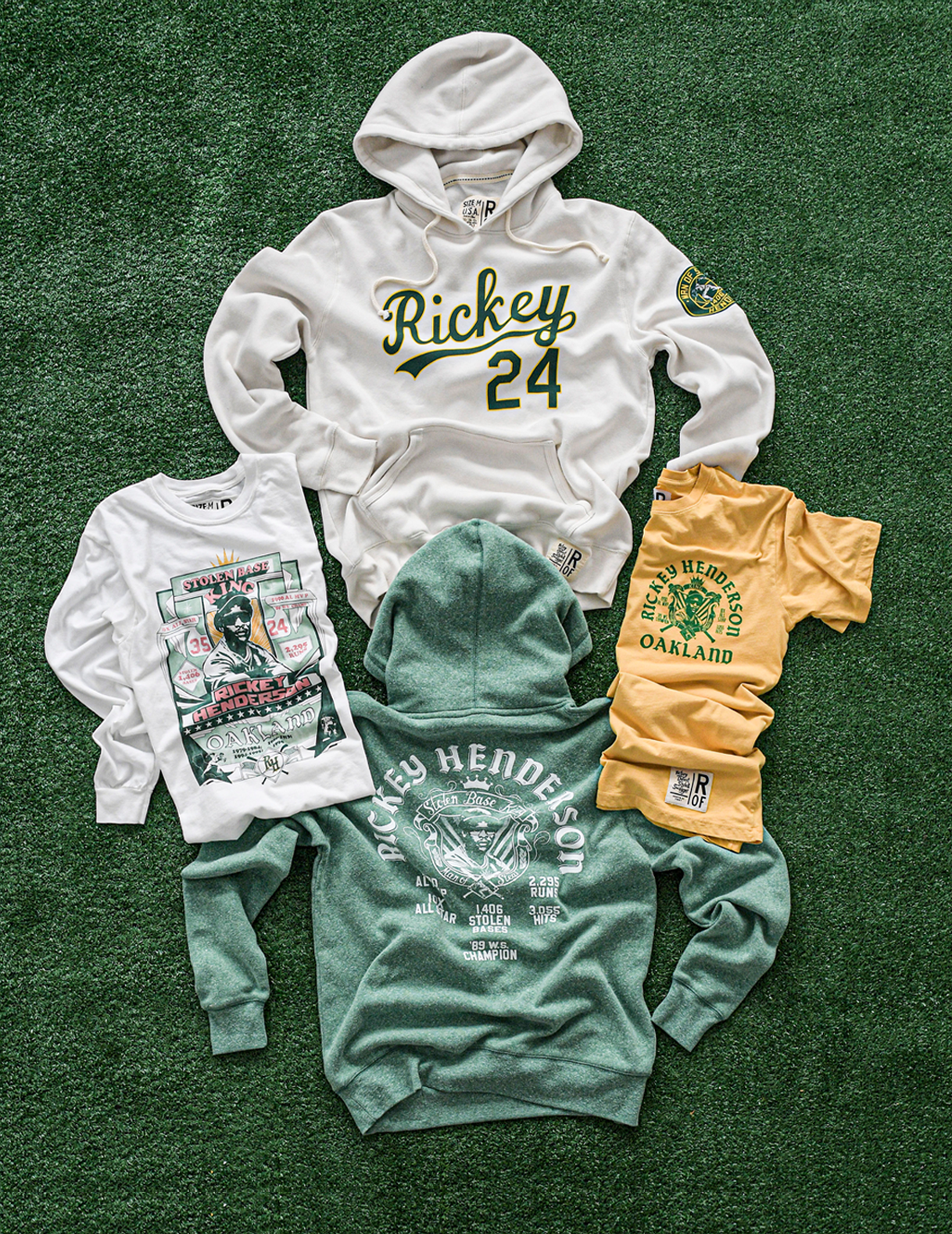 We are thrilled to introduce a new partnership and collection honoring the greatest base-stealer of all time, #24, Rickey Henderson!