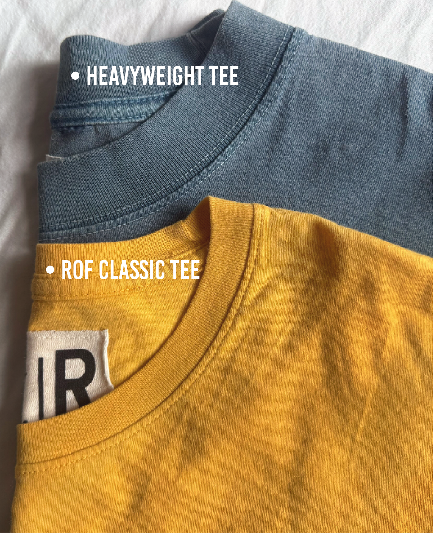 The Heavyweight takes that foundation and gives it more: more fabric, more presence, more edge. With its boxier cut, thicker neck band, and longer sleeves, it’s designed for when you want structure and substance without losing the ease you already love.